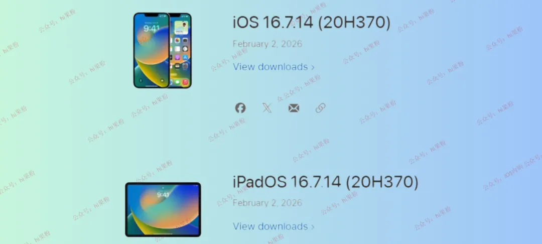 如出一辙,和 2 月 3 号苹果紧急推送了 iOS/iPadOS「16.7.14」正式版一样,也是让无法升级 iOS26 的老设备更新系统(iPhone 5s、iPhone 6、iPhone 6 Plus、iPad Air、iPad mini 2、iPad mini 3、iPod touch 6),1、旧设备如果不升级,2027 年 1 月之后出现问题苹果服务将无法使用。