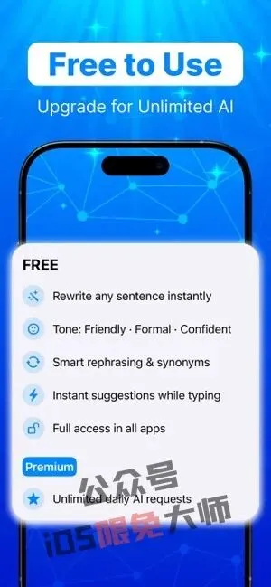 【TextTuner AI: Keyboard】一款用AI驱动的键盘,更聪明地打字,更好地表达自己,帮助你在任何应用中清晰自信地书写。目前软件的内购正在限时免费,获取时注意确认价格,手慢无!