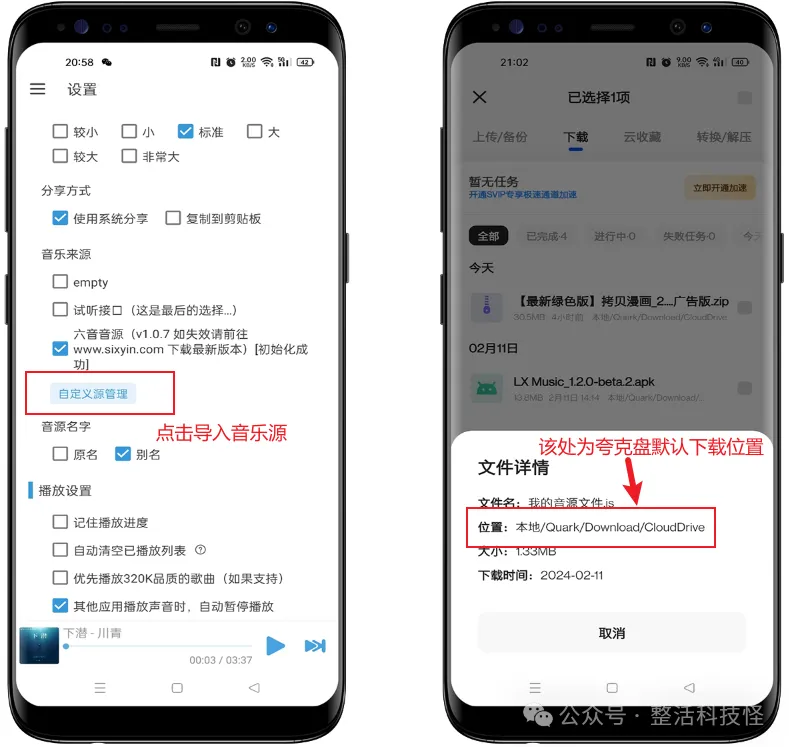 然而,手机导入过程中存在一定难点,主要在于确定手机音源文件所在的目录位置。以夸克网盘为例(其他网盘操作逻辑相近),用户可在网盘内查看文件的保存地址。之后,在手机自带的文件管理器中搜索“CloundDrive”(不同网盘对应的目录名称存在差异,需根据实际情况查看确认),通过此方式可精准定位到音源文件所在目录,进而顺利完成音乐源的导入。