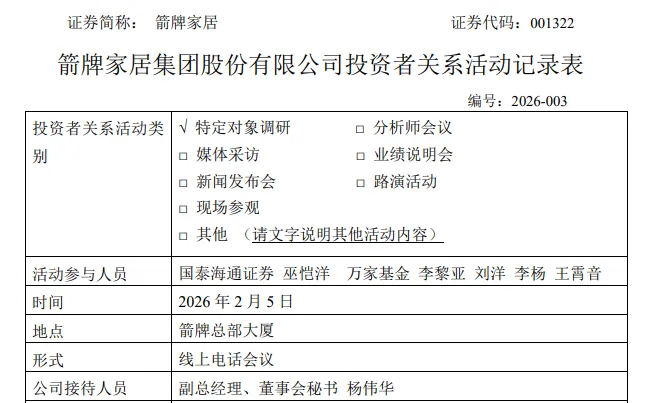 2月5日,箭牌家居集团(股票代码:001322.SZ)在特定对象调研活动中,向投资者清晰勾勒出其以零售为核心、以“店效倍增”为引擎的发展路径。公司副总经理、董事会秘书杨伟华表示,通过聚焦渠道赋能与产品创新双轮驱动,公司正加速全渠道协同,并深化与鸿蒙智选的战略合作,旨在与进口品牌展开差异化竞争,持续扩大市场版图。
