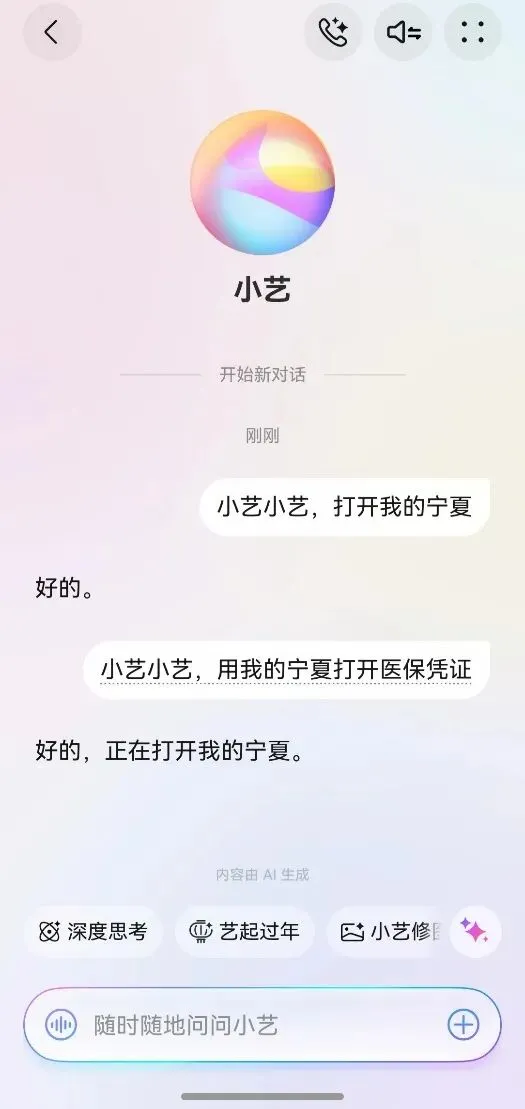 最秀的是它接入了鸿蒙的意图框架,直接召唤小艺就能一步直达。以前找医保凭证得点好几层菜单,现在只要对着手机喊“小艺小艺,用我的宁夏打开医保凭证”,页面直接就跳出来了。主打一个“呼之即来”,真的超爽。