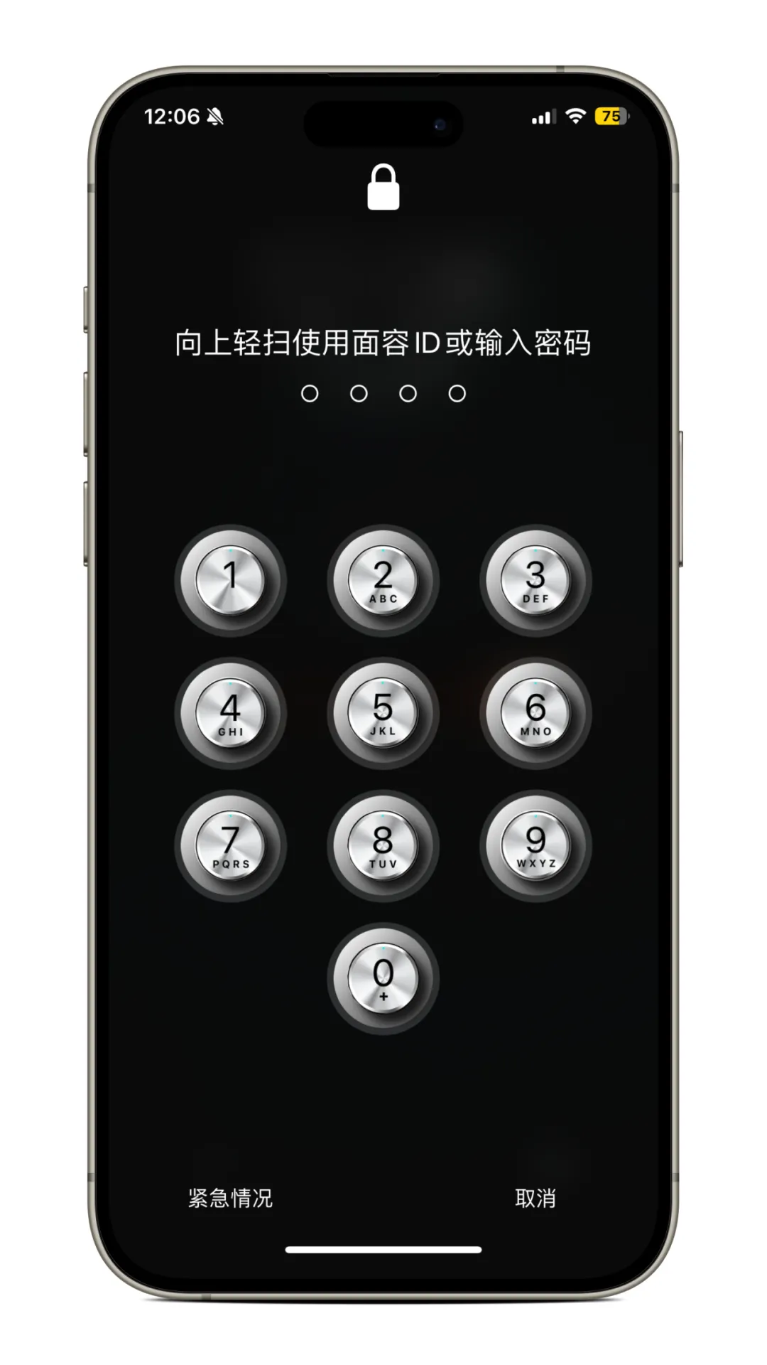 iPhone锁屏数字键换成了不锈钢