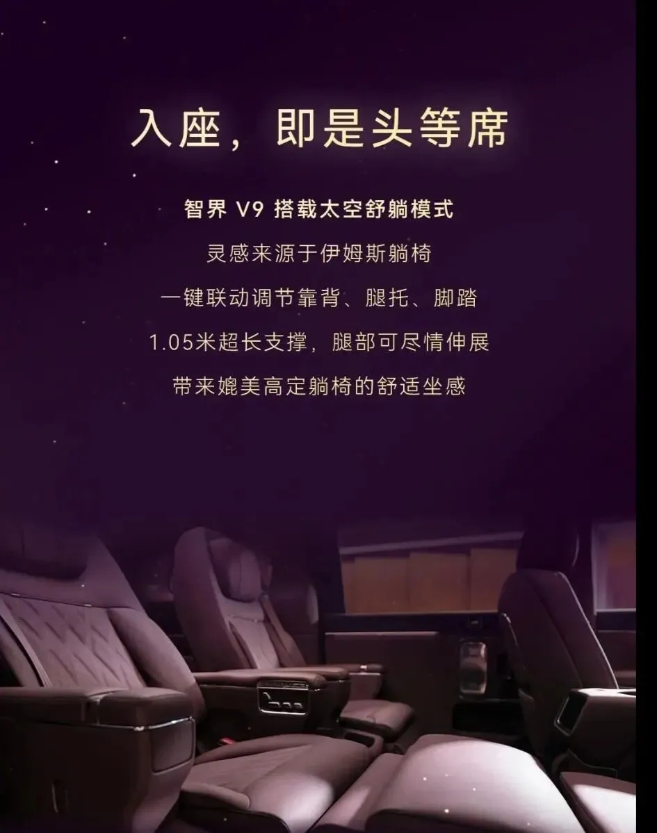 智界V9砍掉冗余伪需求,把成本集中砸在三件事上:座椅可编程、材质有温度、安全有包裹。