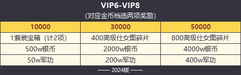 VIP6-VIP8角色:3000杜康酒+300w银币+30w军功