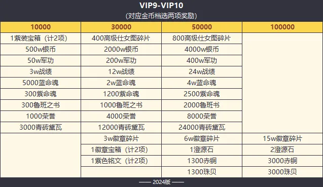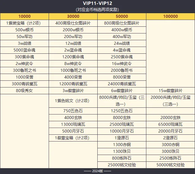 VIP9-VIP12角色:6000杜康酒+400w银币+40w军功