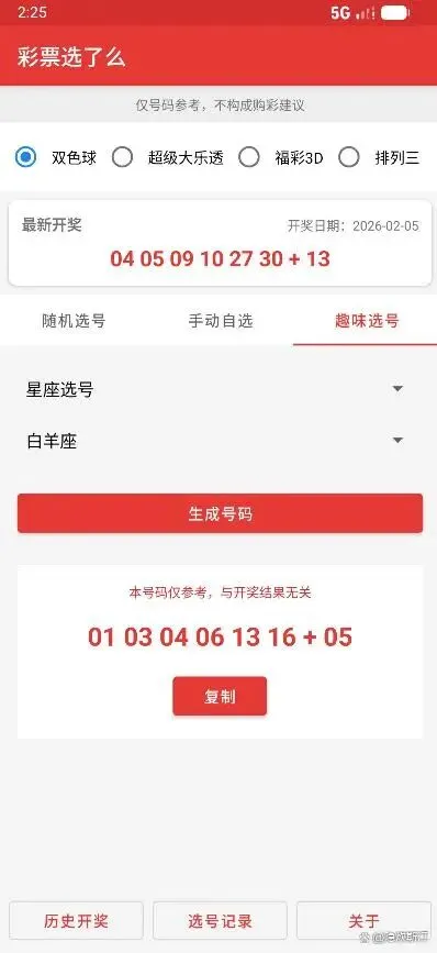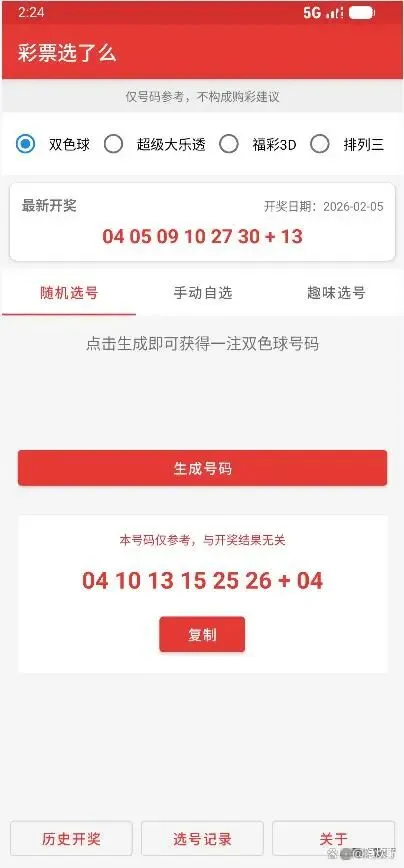6种趣味选号,告别盲选纠结:打破传统单一选号模式,多种个性化玩法任选,每一种都自动适配官方彩种规则,生成有效号码,再也不用为选号头疼!