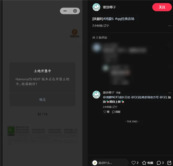 然而,正当大家准备愉快的偷菜时,部分使用华为鸿蒙系统,特别是HarmonyOS NEXT版本的用户发现,他们目前无法进入游戏。