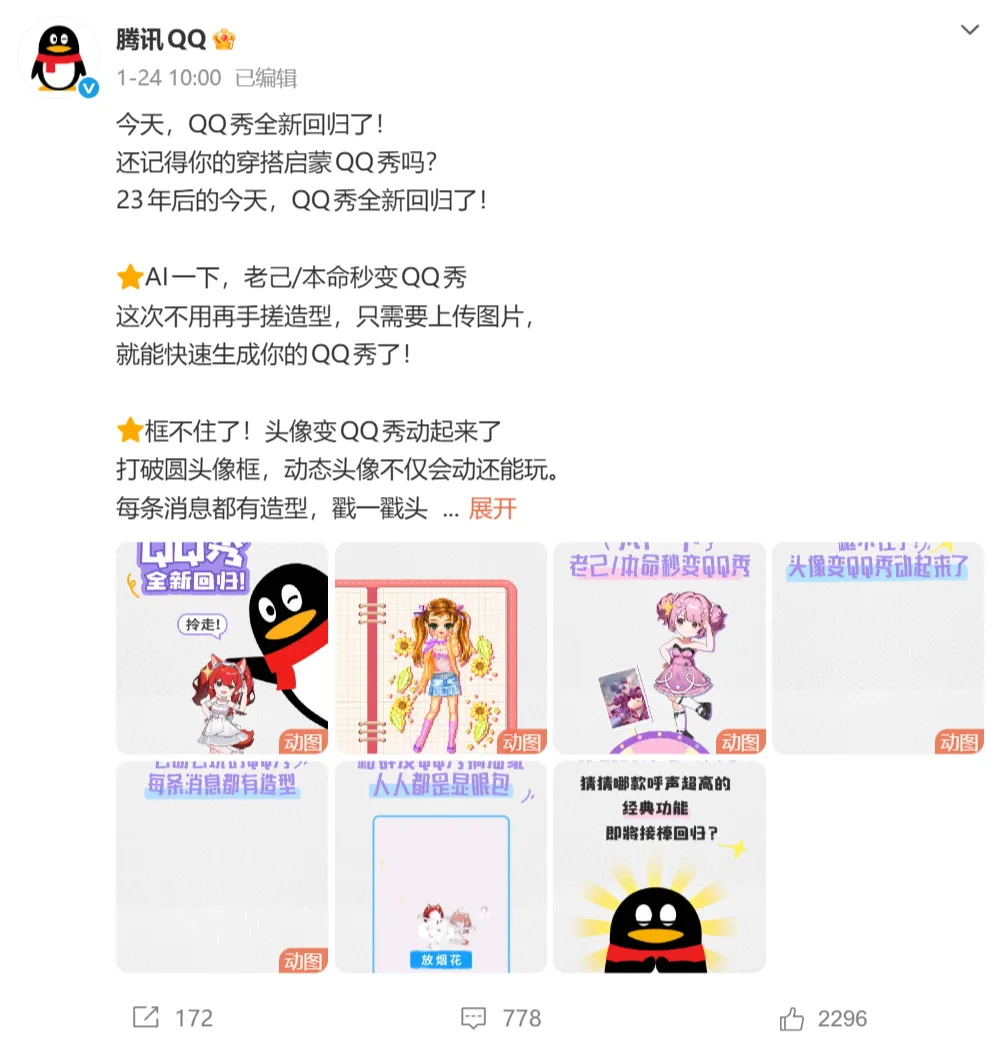 今年1月26日,在腾讯2025年度员工大会上,马化腾也特别提到了QQ秀和QQ农场等老产品的回归。
