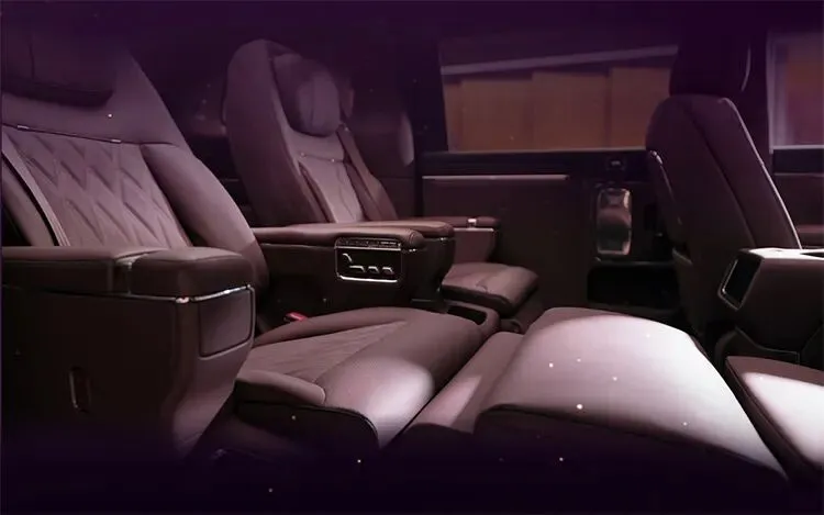 除了灵活的旋转功能,智界V9的二排座椅还配备了零重力模式,一键就能联动调节靠背、腿托和脚踏,能提供1.05米的超长支撑,最大调节角度达123°,久坐也能保持舒适。内饰方面新车更是诚意满满,首发绒霞紫内饰搭配辉光紫外观,配色高级又独特,NAPPA真皮、大面积木饰板随处可见,还有水晶切割风格的装饰件点缀,每一处细节都契合高端豪华MPV的定位。