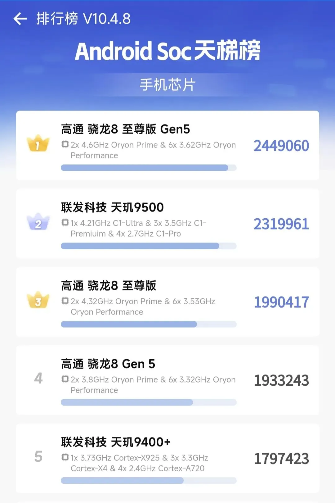 第一名:骁龙8 至尊版 Gen5