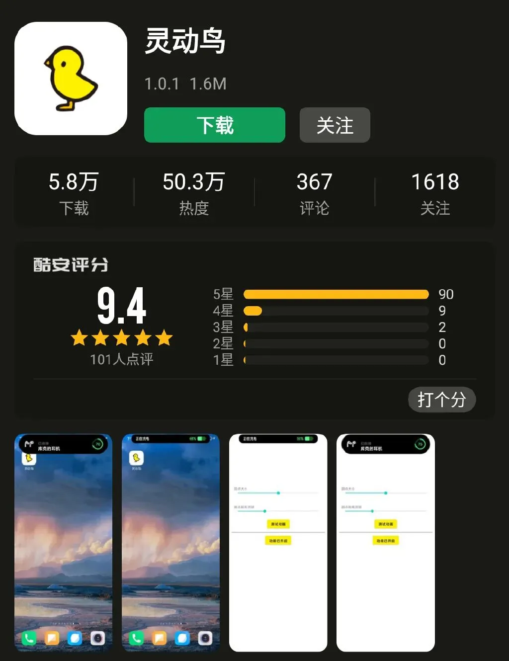 再比如“灵动鸟”,可以实现充电和连接耳机提醒两个功能。