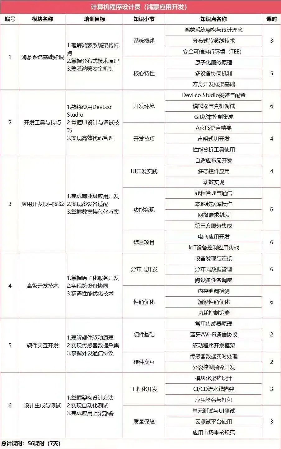 为企业培养能独立开发鸿蒙生态商业级应用的技术人才,精通多设备协同、分布式技术及跨平台适配,助力企业快速布局鸿蒙终端市场,提升产品在智能设备生态中的竞争力。