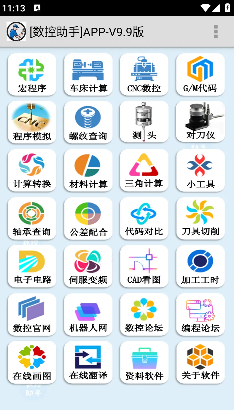 具有查询FANUC齿轮比计算、PMC及宏程序中文报警转码、伺服电机代码、PMC参数及信号地址、主轴换挡计算等;查询兄弟机PLC信号地址、四轴参数、加工模式等;查询三菱PLC开关、PLC常数、R地址信号、加工时间参数;查询 哈斯、新代、西门子、广数 数控系统常见故障报警等;