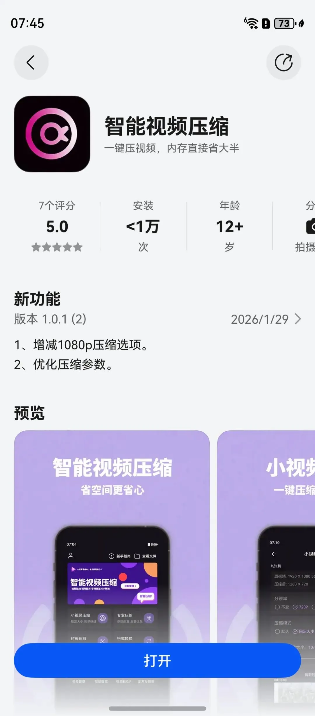 我开发的智能视频压缩应用月活还差90,大家多多支持,帮忙试用一下,我们这做一个应用不容易,我希望得到大家的理解和喜爱,应用是免费无广告的,放心下。