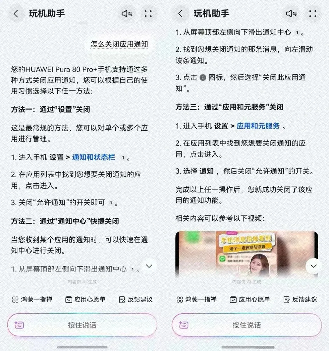 点击卡片进入「玩机助手」对话界面,不管是语音还是打字提问都能得到回应。不管是“怎么关闭应用通知”“怎么设置微信指纹支付”这类系统设置问题,还是“怎么用语音找喜马拉雅上的有声书”“抖音怎么设置后台小窗播放”这类第三方应用使用难题,玩机助手都会立刻给出对应设置步骤,回答里的蓝色关键词还能直接跳转到对应的设置页面,不用自己翻找菜单层级。