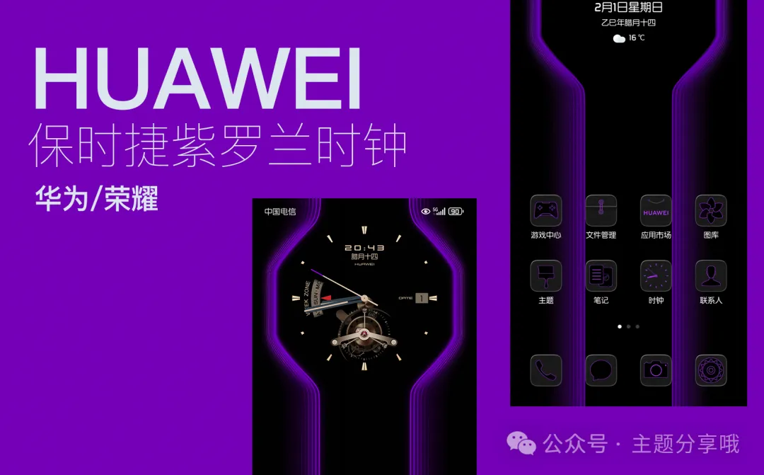华为荣耀主题|鸿蒙保时捷竞速RS一镜到底紫罗兰时钟主题