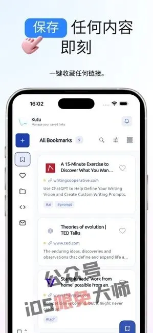 【书签和链接管理器】一款智能书签管理器,一键保存网页自动分类。跨设备同步、极速搜索、视觉化整理,支持加密与批量导出。目前软件正在内购限免,获取时注意确认价格,手慢无!
