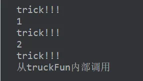 var trick:(String)->Unit ={text ->println("trick!!!")println(text)}funtruckFun(extrick:(String)->Unit){extrick("从truckFun内部调用")}funmain() {// 正确函数引用:赋值不加()val funtrick = trick// 直接调用原函数trick("1")// 通过引用变量调用函数:加()funtrick("2")truckFun(trick)}