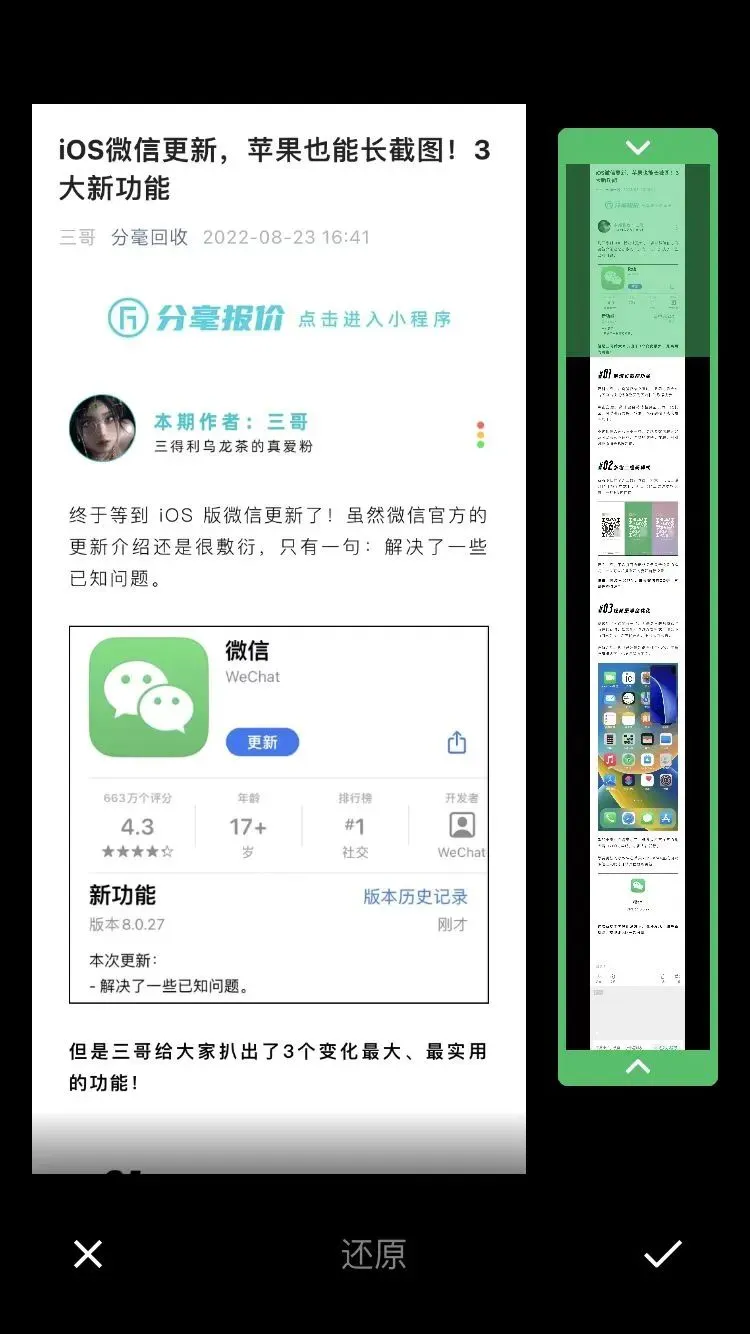 不过相信大家和三哥一样,更想要微信聊天记录可以长截图保存
