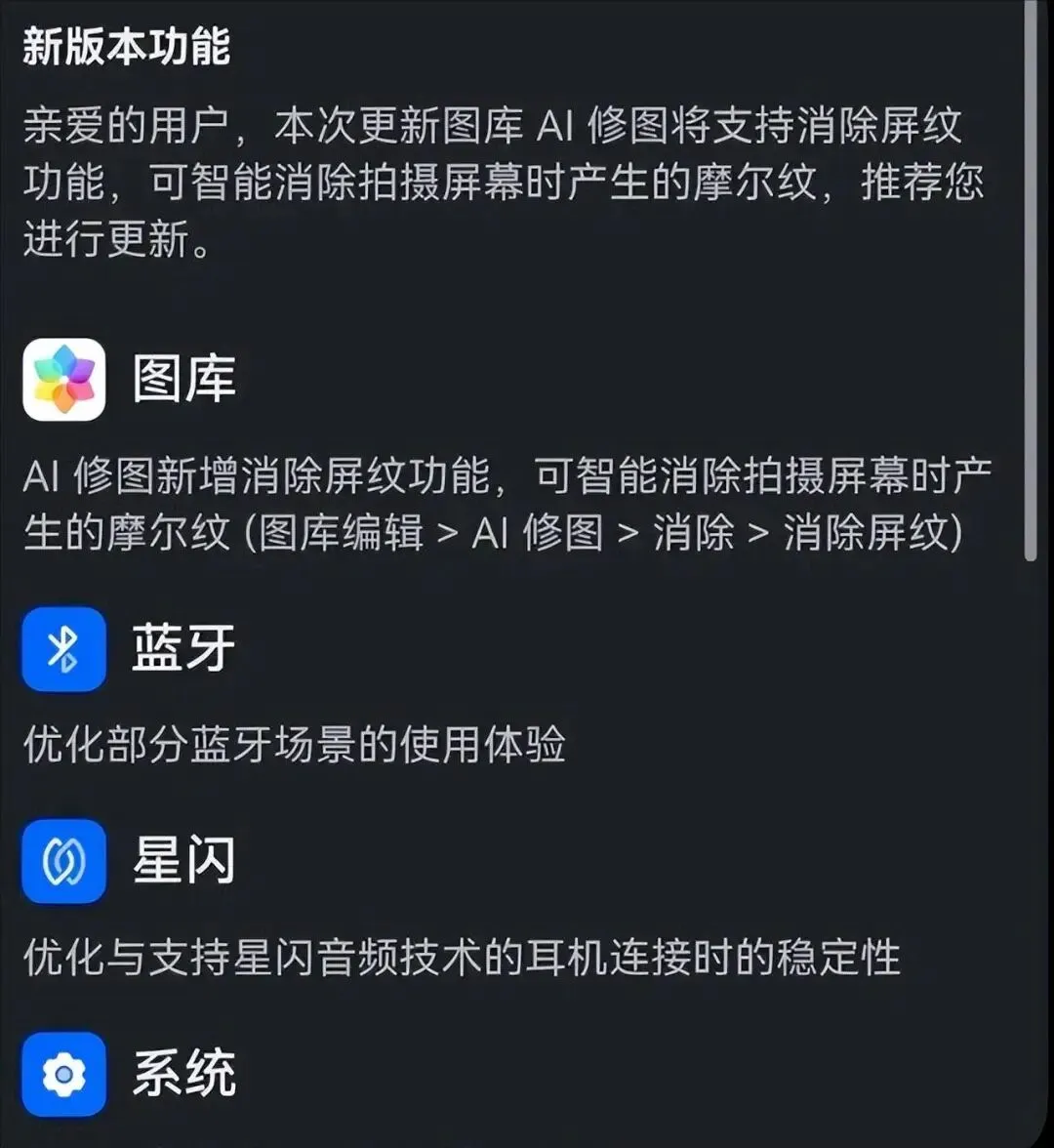 你以为这只是一次常规系统更新,结果却发现华为悄悄给 Mate 80 Pro Max 单独加了一道硬菜,这事本身就不太寻常。HarmonyOS 6.0.130 SP17,这个版本号一出来,其实已经把态度写脸上了,它不是为了交差,而是冲着“旗舰该不该被认真对待”来的。这两天花粉圈讨论得最狠的点,并不是跑分,也不是动画细节,而是一句话:Mate 80 这次,明显被单独照顾了。同一时间,Mate 60、Mate 70 还停在 SP15,Mate 80 Pro Max 却直接跳到 SP17,这不是手滑,是系统团队主动分层。这么说吧,这次更新最狠的地方,并不在参数,而在一个极其生活化、却长期没人管的痛点上。很多人拍会议 PPT、网课画面、电视屏幕,照片看着清晰,放大一看全是彩色波纹,这玩意叫摩尔纹,谁用谁烦。以前要么忍着用,要么导进第三方软件慢慢修,时间成本比拍照本身还高,效率直接被拖死。SP17 这次直接在系统图库里塞了一个“消除屏纹”的 AI 功能,点一下,几秒钟,波纹就没了,画面干净得像系统截图。这个功能不炫技,但它解决的是真问题,对打工人、学生党来说,属于一用就回不去的那种提升。更关键的是,它释放了一个信号,华为开始把 AI 真正用在“提高成片率”这件事上,而不是只堆概念。然后是一个被骂了很久、终于被改回来的设计,小窗悬浮模式,之前强制吸附四角,说实话相当反人类。那种体验就像你明明想把东西放桌子中间,系统却非要你贴墙放,别扭,而且毫无必要。SP17 直接把这个限制拿掉,小窗能随便拖,位置自由,顺手程度一下子回到旗舰该有的状态。更重要的是,小窗场景下的掉帧和锁帧问题也被顺手解决了,视频、游戏挂着跑,不再有割裂感。这类体验改动不写在发布会上,但每天用手机的人,三分钟就能感知到差别。信号这块,Mate 80 本来就是强项,但 SP17 在弱网环境下明显又往前推了一步。地下车库、电梯口这种地方,以前偶尔转圈,现在能稳定加载内容,哪怕网速不快,但至少不掉链子。发热控制也稳得很克制,高强度用一天下来,机身只是温热,没有那种“你在逼我降频”的焦虑感。续航表现同样偏向稳定派,不是突然多出两小时那种夸张提升,而是让你一天用下来心里有数。从早到晚高频使用,回家还能剩下可观电量,这种确定性,比纸面数据更重要。还有一个容易被忽略的点,是连接体验,更新包里专门提到了星闪设备的稳定性优化。实际用 FreeBuds Pro 3 在人多的地铁环境里,断连情况明显少了,这说明系统在细节层面确实做了针对性调校。把这些体验拼在一起看,你会发现 SP17 的思路很明确,它不追求“我多了什么新花样”,而是盯着“你每天最烦的地方”。这类更新对普通用户来说,感知强度往往比大版本升级还高,因为它直接改变了使用习惯。说白了,这是一种偏成熟的系统思维,不急着炫技,而是反复打磨那些已经很接近满分的基础项。如果你手里正好是 Mate 80 系列,这个版本基本没有理由观望,属于那种风险低、回报明确的升级。当然,它也不是完美无缺,动画层面的突破不大,功能扩展也偏保守,但这反而符合 SP 版本的定位。在我看来,SP17 更像是华为给旗舰用户的一次态度表达:你买的是高端机,就不该被混在一锅里对待。系统更新这件事,最怕的不是慢,而是敷衍,这次至少能看出来,华为没有把 Mate 80 当成“发完就算”的产品。你要问值不值更新,我的答案很直接,这次不是为了新鲜感,而是为了用得更顺。Mate 80 的潜力,其实还在慢慢释放,而 SP17,只是其中一个不太张扬,但很关键的节点。如果你已经收到了推送,不妨更新后留意一下那些细节变化,很多体验,真的是用着用着才发现不一样。你觉得这次 SP17 是加分项,还是你心里的“刚好及格”,评论区聊聊你的真实感受。