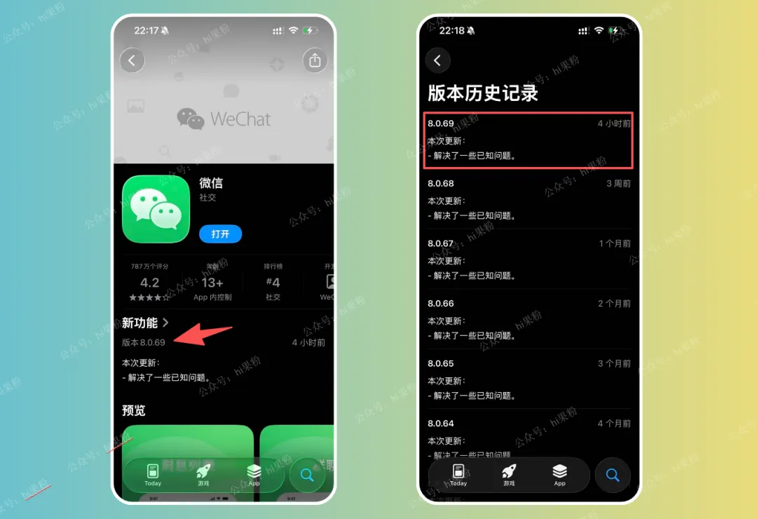 目前,用户关注较高的——深色图标,在iOS 微信 8.0.69 依旧没有适配。