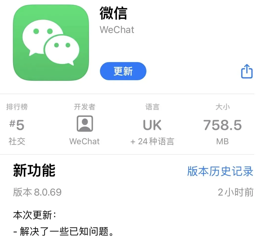 iOS微信8.0.69正式版已发布,距8.0.68正式版发布23天,距8.0.69测试版发布仅11天。