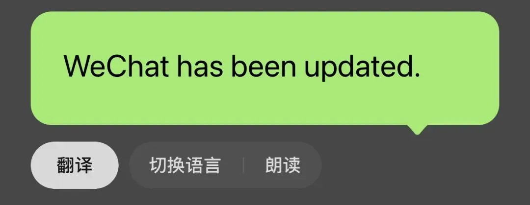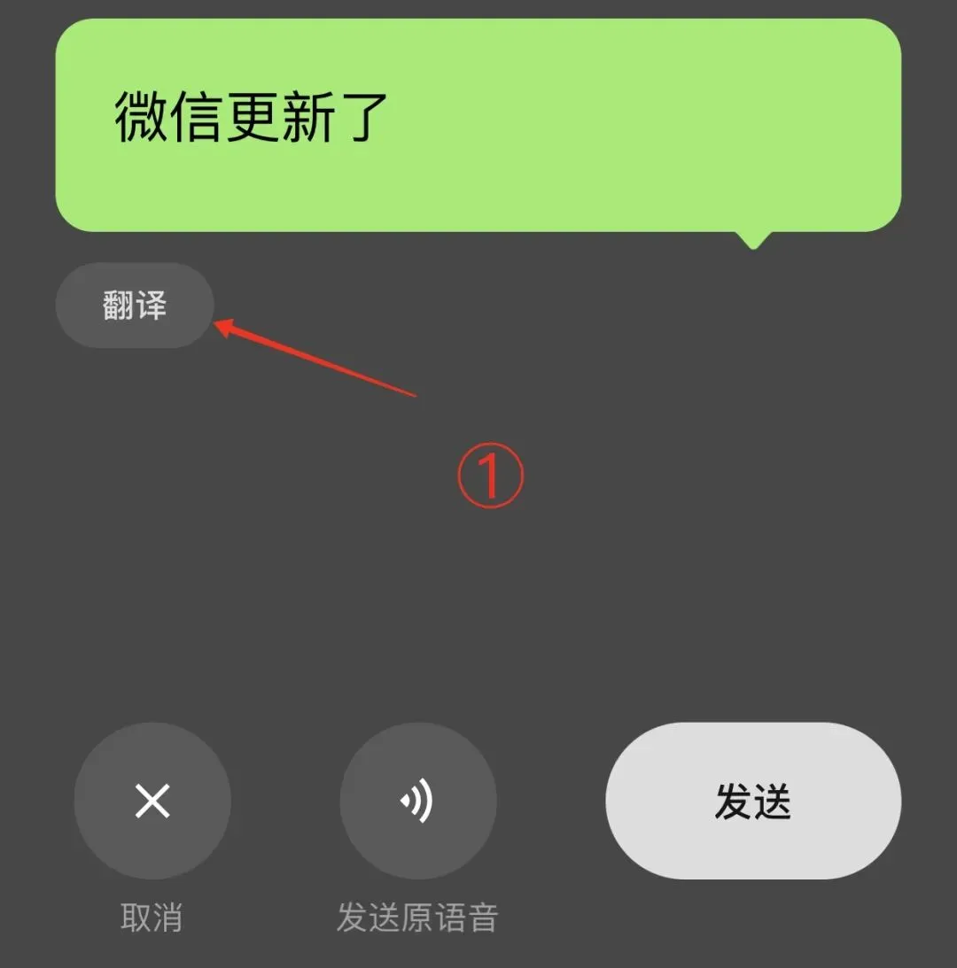 取消了语音转文字后的“轻触气泡可以修改文字”"整理文字"按钮简洁了,新版气泡下新增“翻译”按钮。