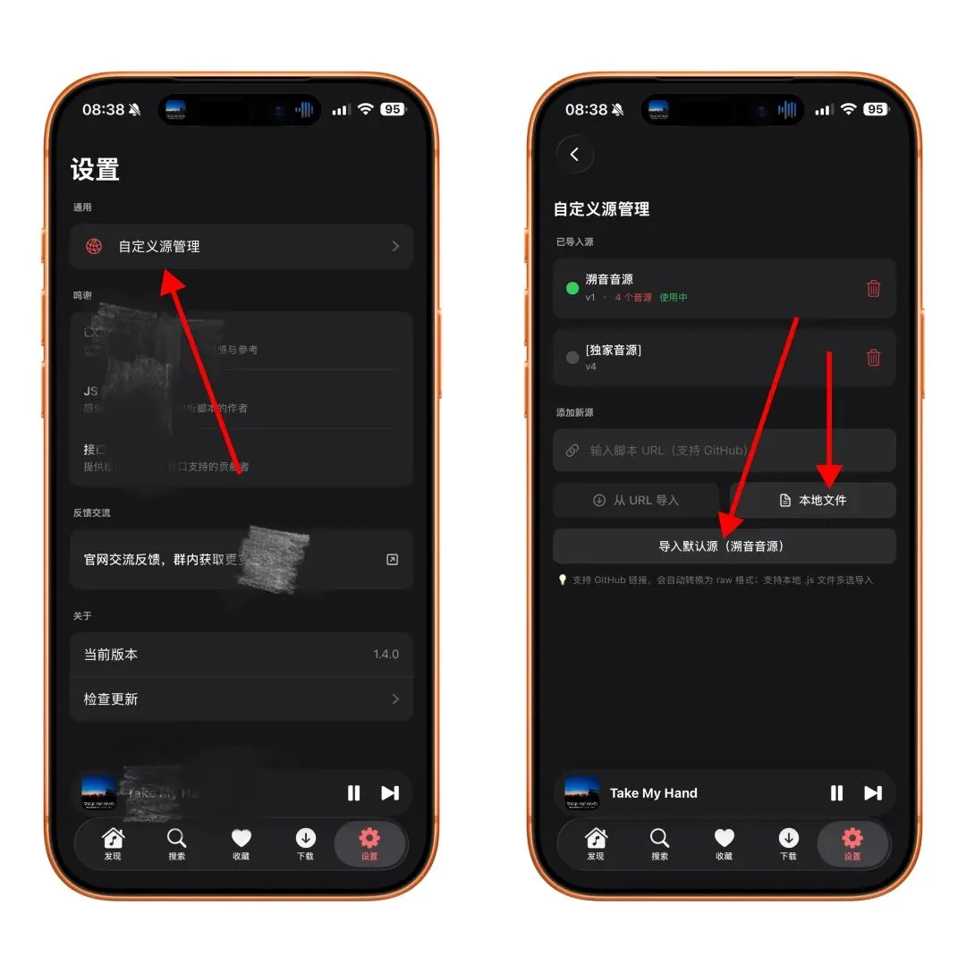 后台获取🔗后在safari浏览器中打开(其他浏览器没用),稍等会儿,会有弹窗,点击打开,点击安装即可,这时候返回桌面就看到App啦~,打开手机设置,通用,v*n与文件管理,选择软件,信任即可(部分设备需要重启),然后就可以正常使用了!3.打开歌一刀,点击右下角设置,选择自定义源管理,可以导入默认源,也可以本地导入小编给大家准备好的音源~这是一款不错的音乐软件,支持在线听歌,支持下载缓存,支持收藏音乐。“点赞”+“在看”后,在本公众号聊天框内回复关键词:歌一刀,即可获取ipa及音源~