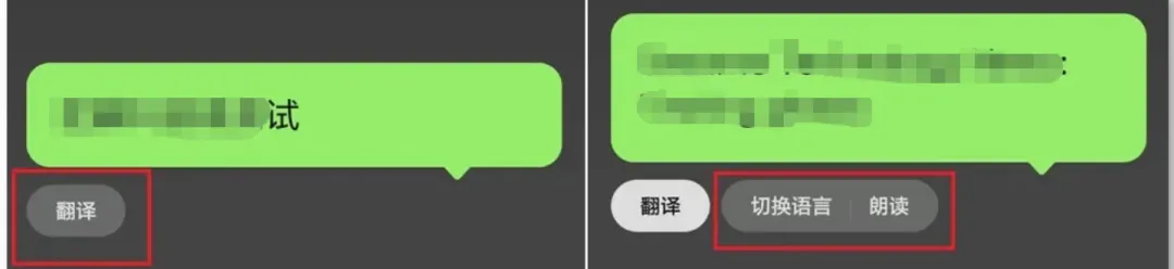 在微信对话框按住说话,并选择「滑到这里转文字」后,现在文字气泡左下角多了一个“翻译”,同时右上角的“整理文字”的选项被取消,点击翻译后可切换语言以及朗读。
