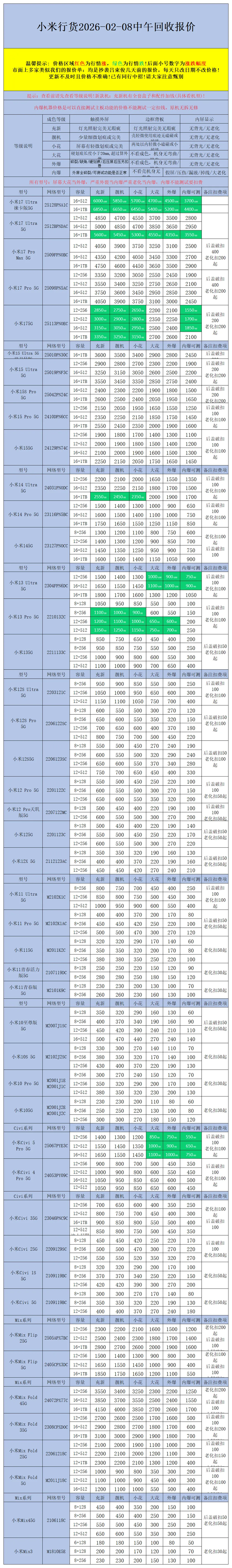 >【安卓】二手机回收报价2026-02-08