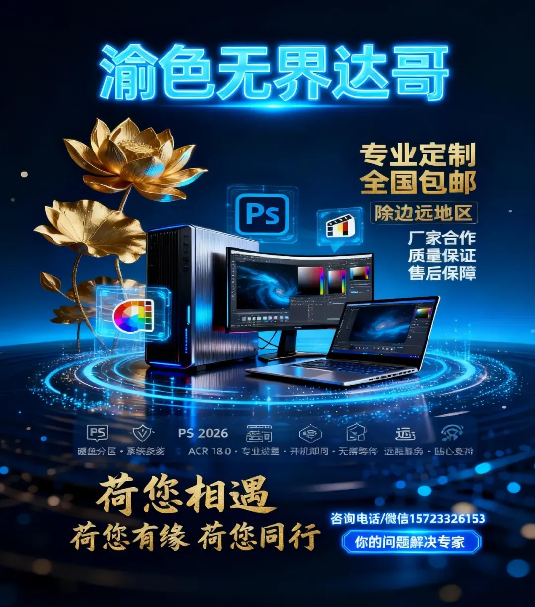 达哥推荐,适全PS后期学习的豪华级电脑配置——不含显示器——预安装电脑软件、插件,设置好软件色彩空间,拿到手,插上电,就可以使用了最新——Inter 15代 CPU: Ultra 9 285K 3 2G 二十四核 内存金士顿128G DDR5 6000转 32GX4 固态硬盘三星990 PRO 2T INTEL板-微星-Z890-GAMING-PLUS-WIFI NV卡-微星-RTX5080-16G-VENTUS-3X-PLUS-OC 长城机箱 M69 PRO 电源长城X8 850W全模 超频3 360 三排水冷 罗技有线键鼠