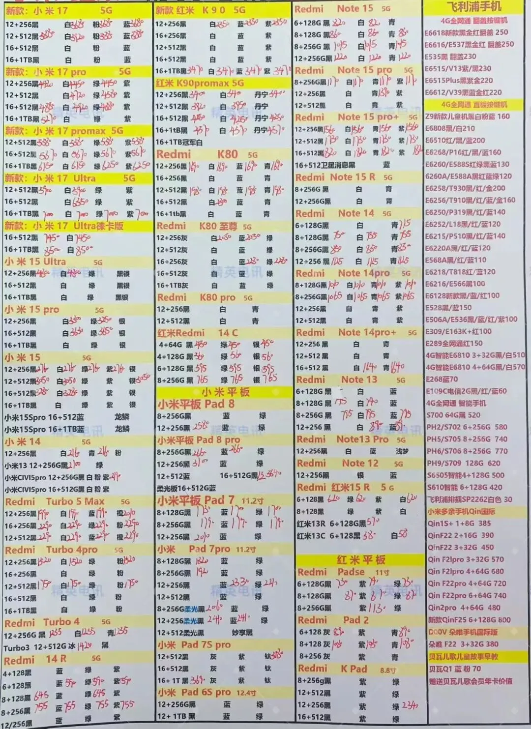 以下报价都是深圳华强北手机批发市场当天的最新批发价格(不含税),报价是我们的批发底价,零售拿货价格需加20~100元不等,京东包邮(量大价格可谈)