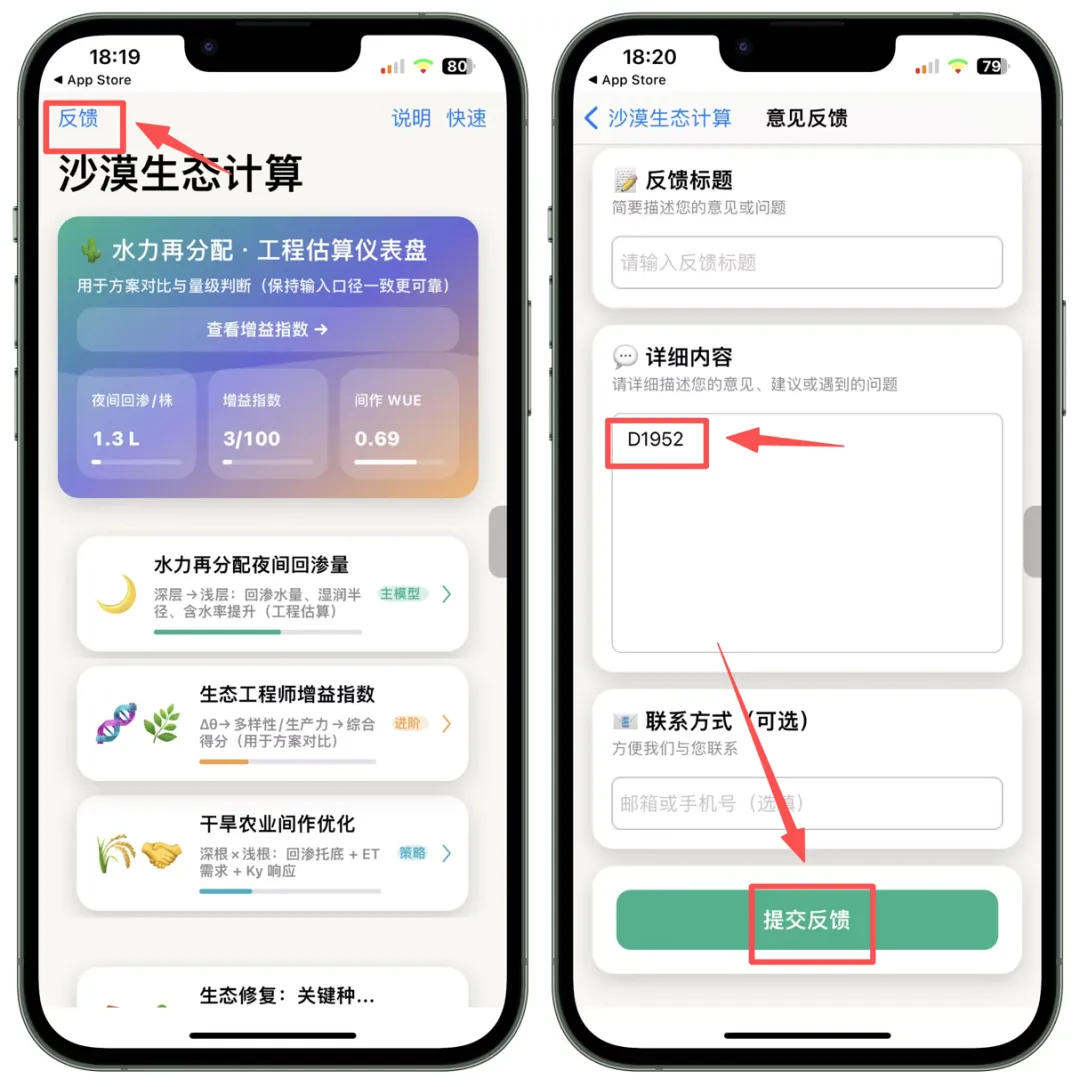3、反馈内容输入【D1952】-【提交反馈】-【确定】手动关闭APP