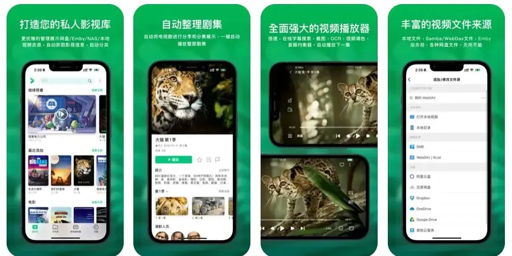 用的比较多的emby播放器,支持4k HDR等多种格式,支持网盘共享,emby,jelly,plex 本地播放等。