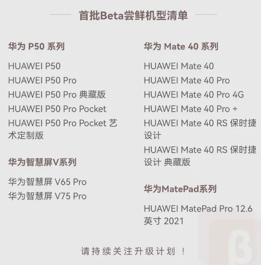 正式版将在9月开始规模升级,以下机型可以先下载鸿蒙3.0版公测版尝鲜体验。