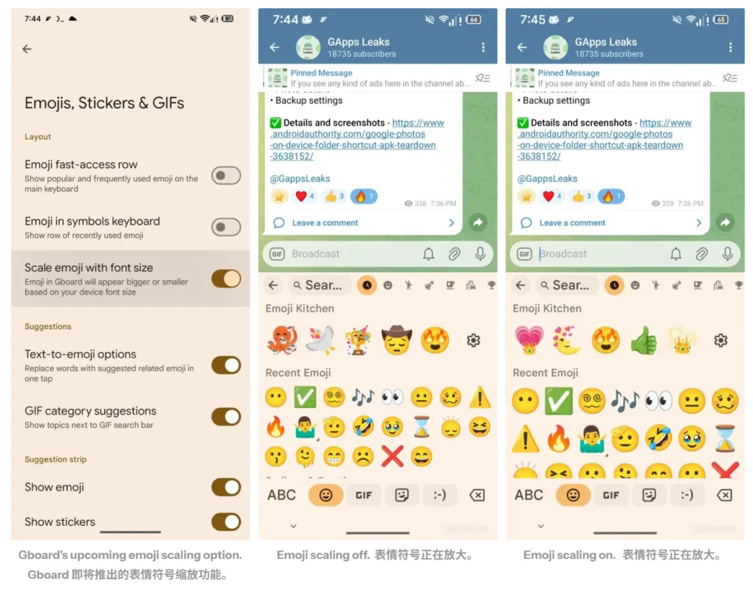 2 月 8 日消息,科技媒体 Android Authority 近日发布博文,通过拆解 Gboard 测试版,发现谷歌正酝酿新特性,表情符号(Emoji)大小随系统字体同步缩放。