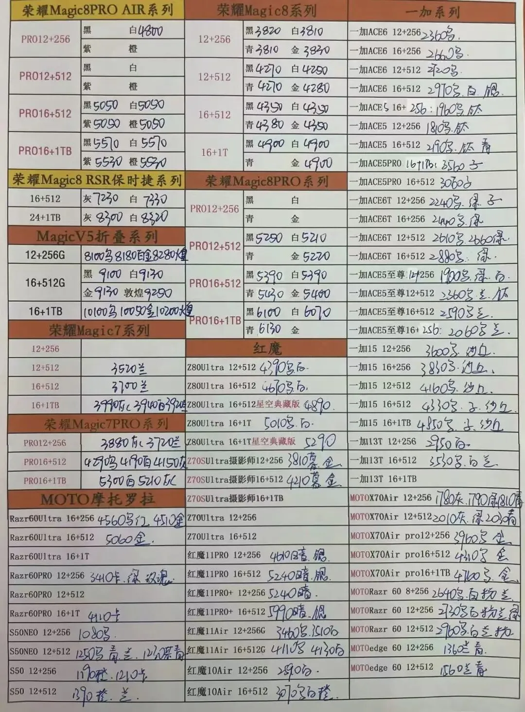 以下报价为深圳华强北商家交易底价,根据不同的提货量有相应的加价!零售:2500元以内的机器在报价的基础上每台加50;2500元以上的机器在报价的基础上每台加100