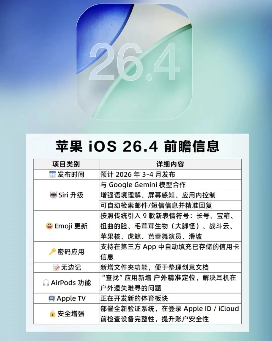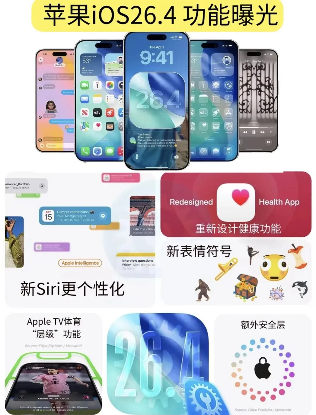 果粉们注意啦!据郭明錤爆料及苹果开发者社区消息,iOS 26.4系统确定2月23日当周开启内测,3-4月推正式版,这次Siri智能能力大幅提升,终于摆脱“小迷糊”标签!