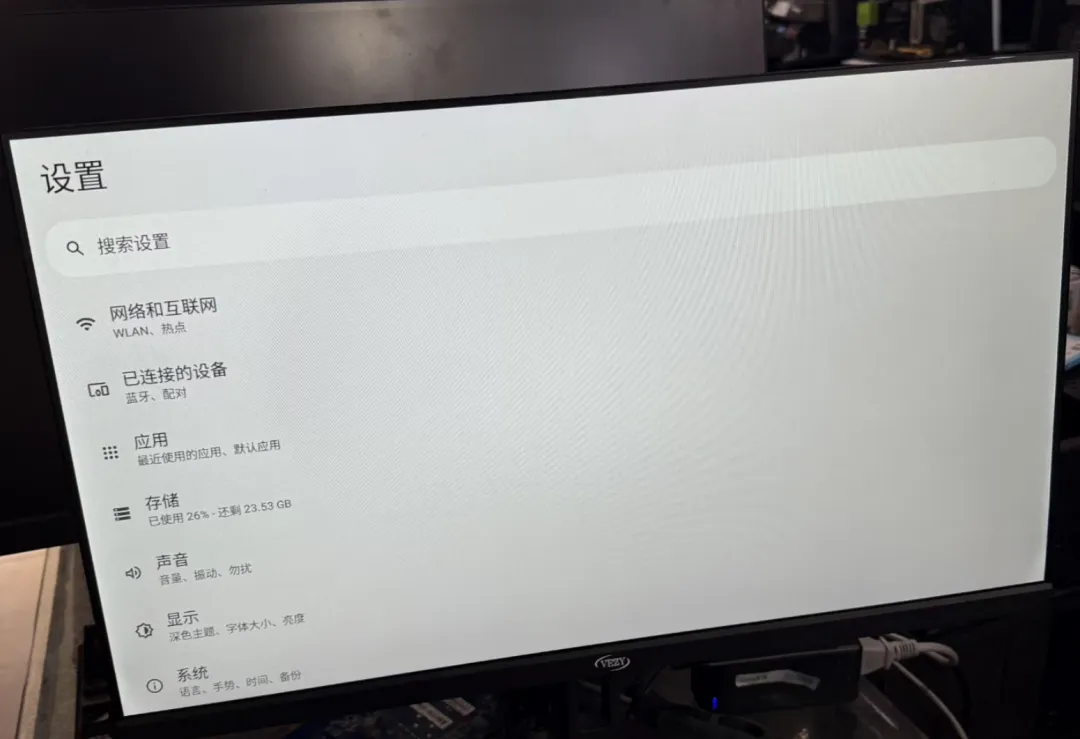 不过有大佬适配了第三方固件,刷入精简版安卓或Linux系统后,安装了Jellyfin客户端,直连家里的NAS。RK3566的解码能力足以流畅播放4K HDR片源,配合23.8寸大屏,观影体验吊打同价位的便携显示器。原装附赠的无线键鼠套装,正好用来操作界面。