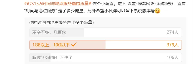 网友们纷纷晒出自己的流量账单,并发起了投票,实锤“时间与地点服务”确实存在偷跑流量的情况。