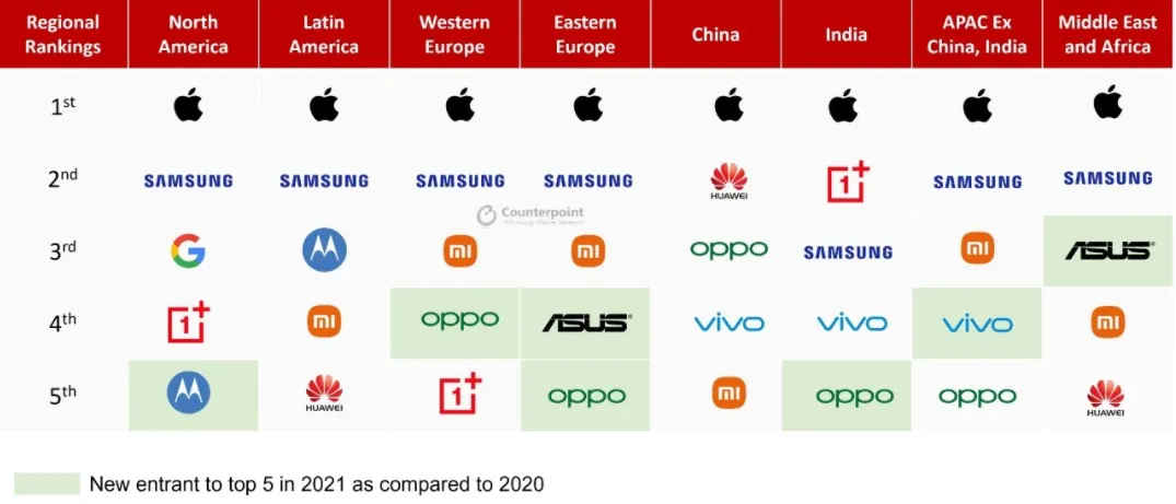 三星虽然淡出了中国市场,但依然是稳居全球第二的手机品牌,在多个国家&市场占有率仅排在苹果之后。