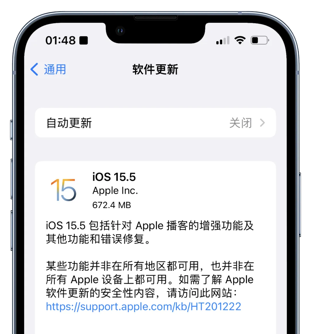 iOS 15.5 将 iPhone 13 的基带升级至 1.61.00,改善了信号不稳定、断流等现象。