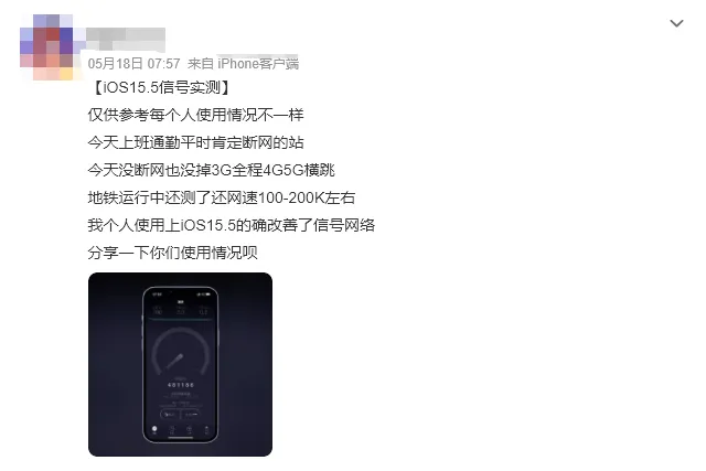 不少用户表示:之前 iPhone 在停车场或者地下室, 信号只有 3G 网络 更新之后能保持 4G 网络并正常上网。