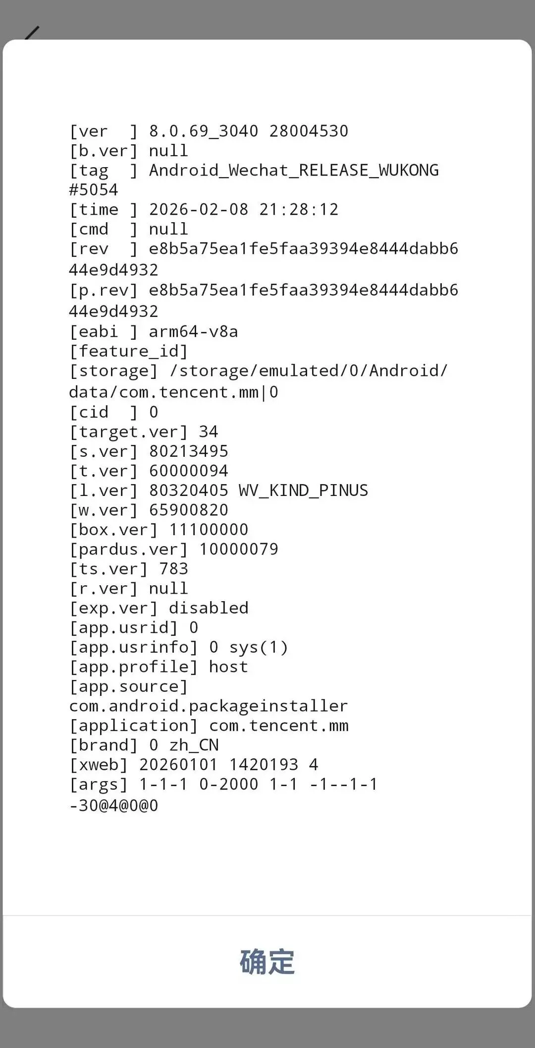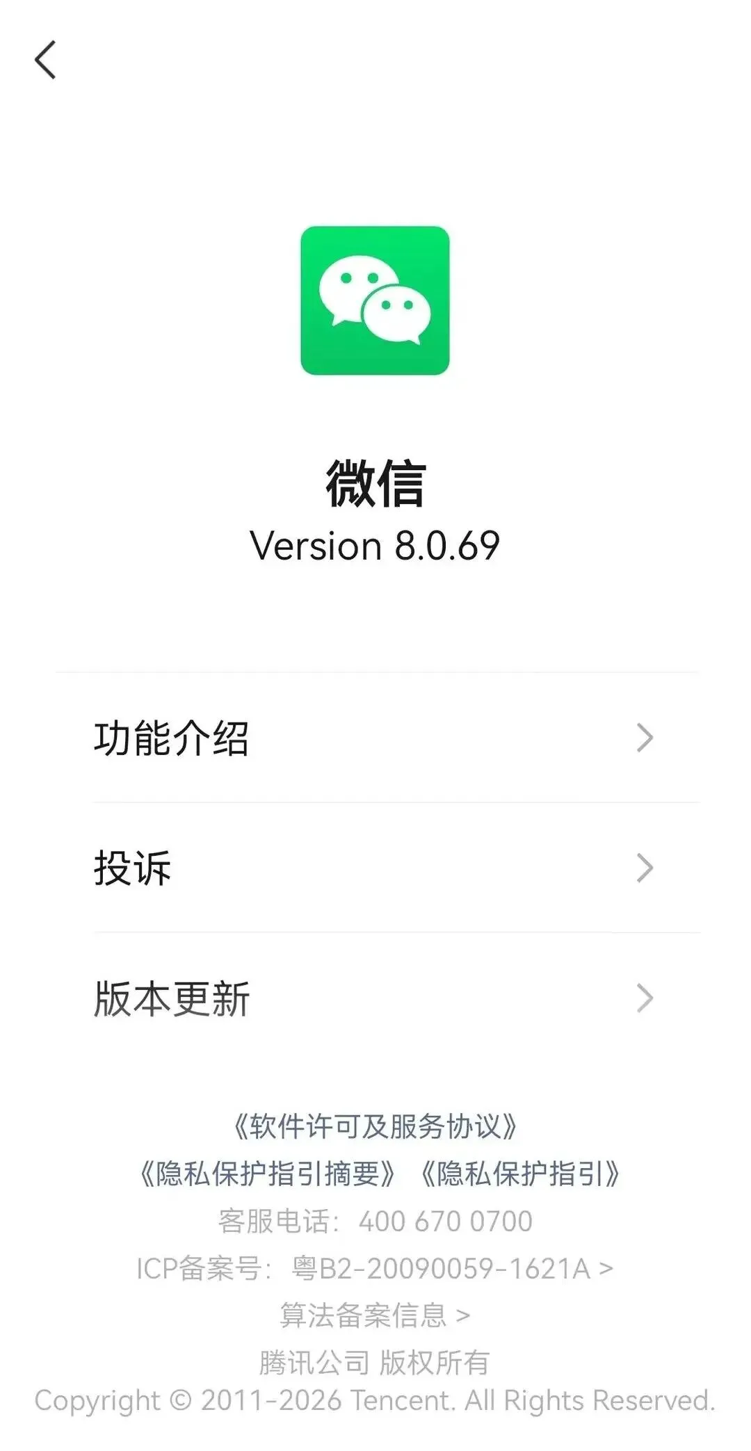 正式版本号为8.0.69_3040 28004530,显示上线时间为2026年2月8日21:28,大家更新完可以自己点击设置-关于微信-双击微信图标查看哈。