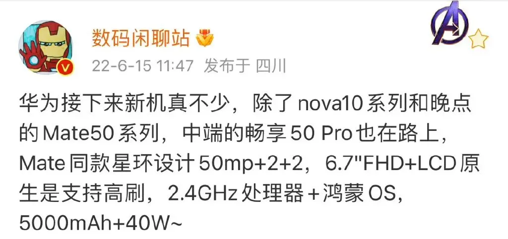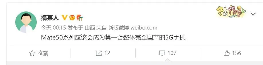 有数码博主近日提供了新的爆料,“华为Mate50系列应该会成为第一台整体完全国产的5G手机”。零部件基本实现国产化,处理器采用魔改5G。