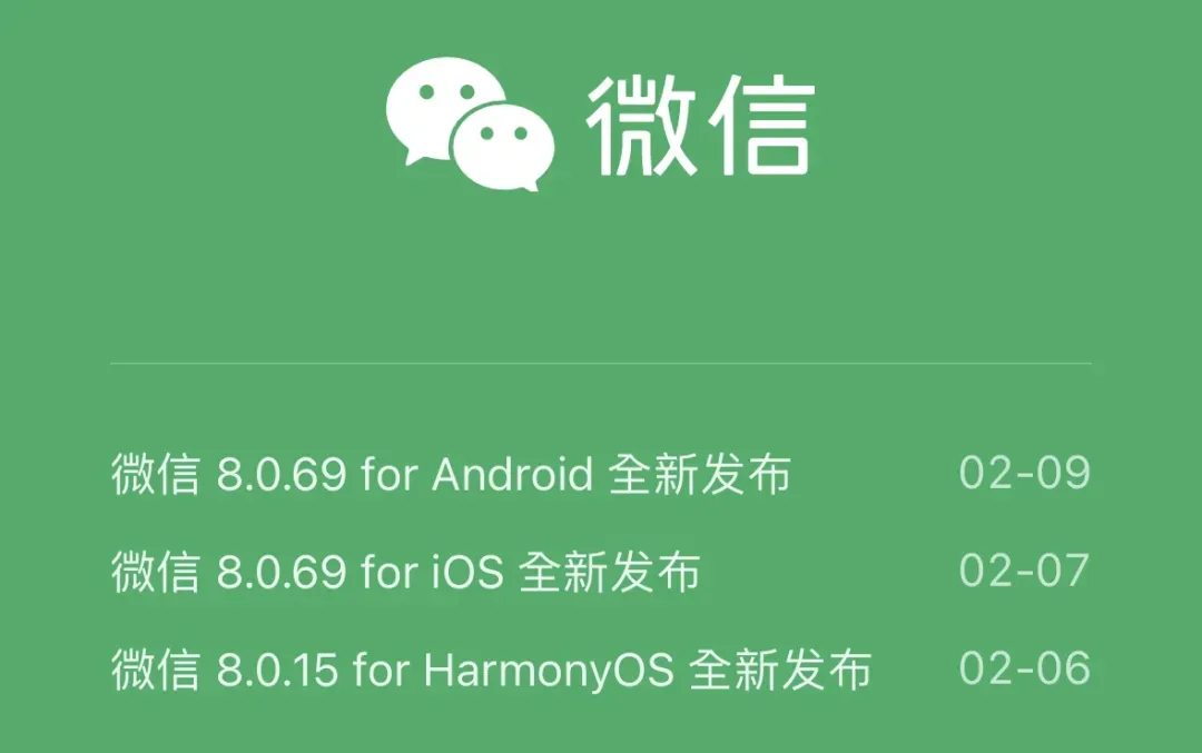 在2月7日,iOS 微信迎来了 8.0.69 正式版更新,现在安卓的也来了!