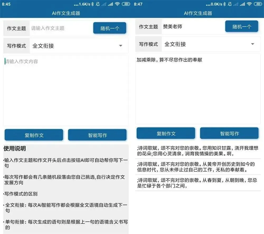 软件名称: 安卓AI作文生成器v1.0
