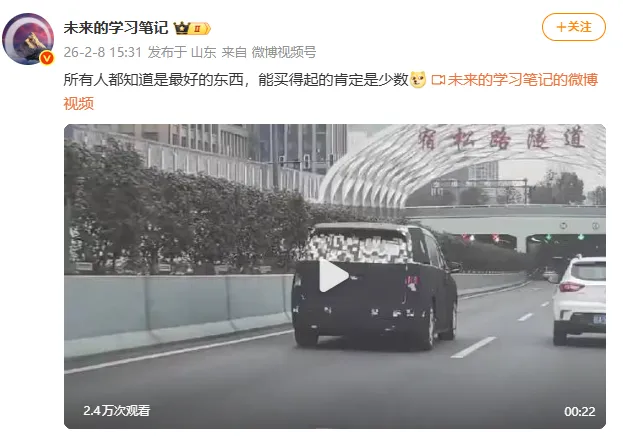 近日博主@未来的学习笔记 在微博分享了一段视频,视频内容是鸿蒙智行首款MPV路试车: