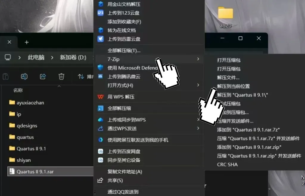 找到要解压的压缩包,右键选择显示更多选项,找到7-zip,选择解压到当前位置即可