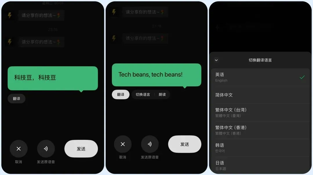 iOS 微信新版本来了,版本号为 8.0.69。距离上一个版本发布差不多有 3 周时间,大概率也是年前的最后一个版本了。官方更新文案依旧为 「解决了一些已知问题」,这也是微信的常规操作。微信的新功能通常是通过热更新或新版本内置的方式进行更新上线的。语音转文字功能采用的是新版本内置的方式进行发布的,也是对原有功能进行了全新的调整。新增了翻译、切换语言、朗读三项功能。翻译功能默认为中文转英文,切换语言功能提供了多种语言翻译,朗读功能针对当前翻译的文案进行语音朗读。这些功能对于使用不同语言的用户来说,确实方便了许多。之前的语言转文字的「整理文字」功能也很好用,只不过新版本将它去掉了。以下这些功能,都是通过微信热更新的方式进行上线的,覆盖范围有限,升级后如果无法体验也是正常的,等待一段时间后,这些功能基本上都会全量放开。视频电话新增上锁功能,在视频通话页面,右上角新增了一个锁形按钮,点击上锁功能后,视频画面的其它功能按钮会被隐藏,也是防止某些场景下,误触导致视频挂断的情况,该功能目前只针对视频通话,语音通话暂不支持。微信消息支持语音连续朗读功能。在聊天页面,长按某一条消息,在弹出的菜单页面中,选择「从当前听」功能,此时会从当前选择的文本位置开始一条条的向下连续朗读,朗读支持文本和语音消息。通过朗读消息,方便用户收听指定范围内的消息内容。微信通知显示头像功能,这个功能截止到目前,已经内测很长时间了,虽然当前覆盖的范围有所扩大,但仍有部分用户还是无法使用此功能。这个功能应该很稳定了,不知道微信为什么还不进行全量开放使用。